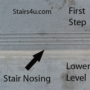 concrete stair step warning lines on every stair tread and at the base