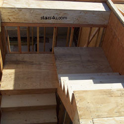 Plywood is made by gluing multiple pieces or strips of wood together in alternating directions. Plywood is commonly used for building floors, walls and roofs and believe it or not, can also be used for stairs. The picture below provides you with an excellent example of a stairway that was built out of construction standard lumber and plywood.